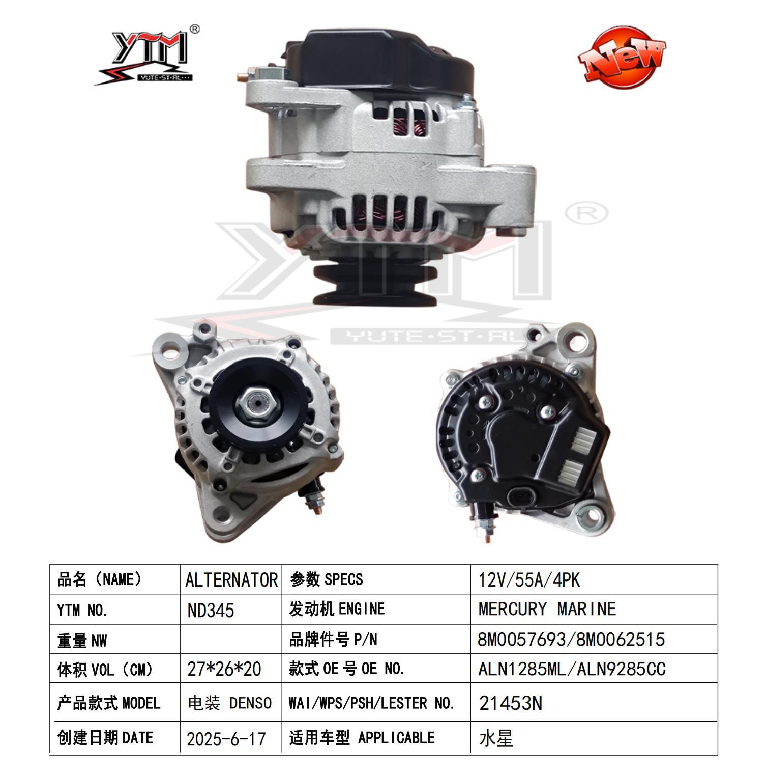 Premium 12V 55A 4PK Lichtmaschine für Mercury 8M0057693 8M0065239 ALN1285CC